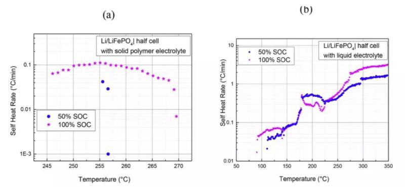 安全性是目前液態(tài)電解質(zhì)鋰離子電池面臨的另一棘手問題,而固態(tài)電解質(zhì)的出現(xiàn)讓鋰離子電池的安全性得到了大幅提升。研究表明采用液態(tài)電解質(zhì)的Li/LFP電池在90℃左右就開始發(fā)生自放熱反應(yīng),并在178℃左右引起了電池熱失控,而采用固態(tài)電解質(zhì)的Li/LFP電池自放熱溫度提高到了247℃以上,并且整個過程未發(fā)生熱失控【6】。傳統(tǒng)液態(tài)電解質(zhì)鋰離子電池往往是由于高溫引起的隔膜熱收縮和熔融而導致的大面積內(nèi)短路引發(fā)熱失控,而以無機固態(tài)電解質(zhì)為例,其熱穩(wěn)定性明顯高于高分子聚合物類隔膜材料【7】,因此高溫導致正負極短路的風險幾乎為0,從而使得采用固態(tài)電解質(zhì)的鋰離子電池熱失控風險大幅降低。同時,即便是電池發(fā)生了熱失控,固態(tài)電解質(zhì)的可燃成分也要遠遠低于傳統(tǒng)的碳酸酯類電解液,從而能夠顯著降低鋰離子電池熱失控的劇烈程度,對于動力電池的安全性具有顯著的提升。