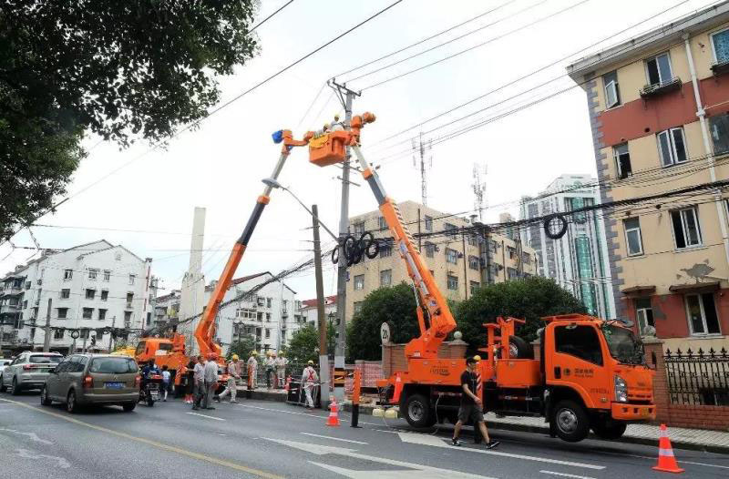 ▲國網(wǎng)上海電力在市中心開展不停電作業(yè)