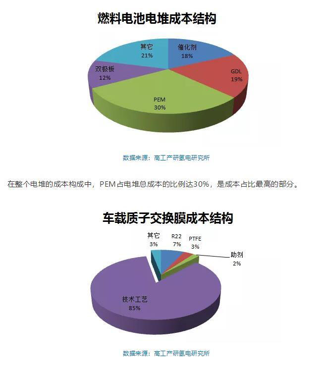 為什么質(zhì)子交換膜在燃料電池的核心材料中,備受關(guān)注?主要原因在于質(zhì)子交換膜的成本在整個(gè)燃料電池電堆的成本占比中居高不下。