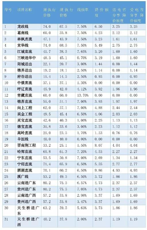表4:跨省跨區(qū)專項(xiàng)工程輸電價(jià)格