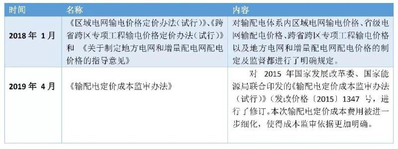 國家相繼出臺(tái)相關(guān)文件對輸配電價(jià)進(jìn)行改革,在2015年到2018年,建立了一套科學(xué)獨(dú)立的輸配電價(jià)定價(jià)機(jī)制,完成了全國31個(gè)省和區(qū)域的電網(wǎng)輸配電價(jià)核定,同時(shí)對20余條跨省跨區(qū)專項(xiàng)工程輸配電價(jià)的價(jià)格進(jìn)行了核定。