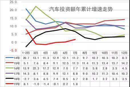 5. 19年1-7月汽車投資力度稍有回升