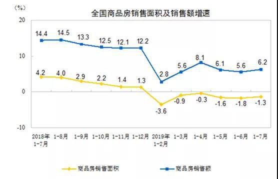 汽車生產(chǎn)、消費、投資、增加值全面為負,樓市火爆對車市影響巨大。2019年1—7月份,全國房地產(chǎn)開發(fā)投資72843億元,同比增長10.6%,其中,住宅投資53466億元,增長15.1%,仍相對較高。1-7月商品房銷售額83162億元,增長6.2%,其中,住宅銷售額增長9.2%。