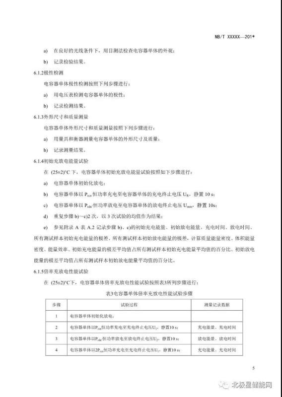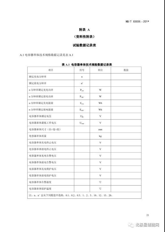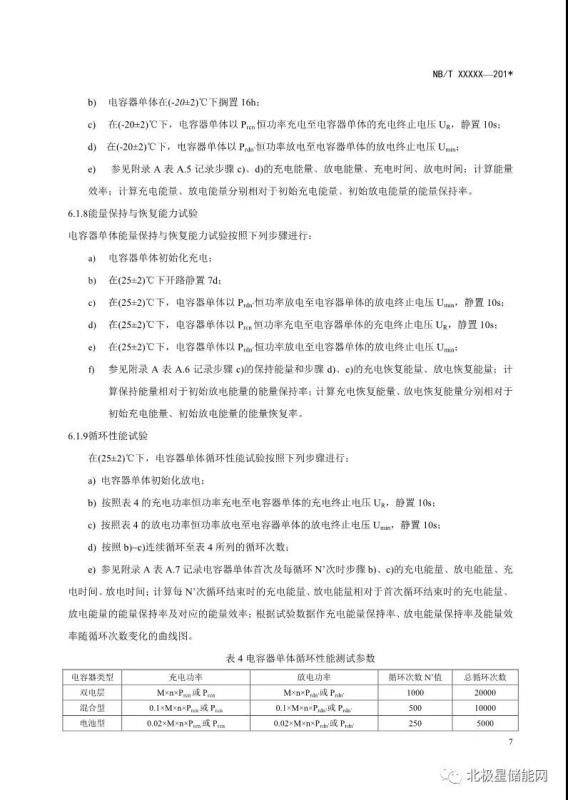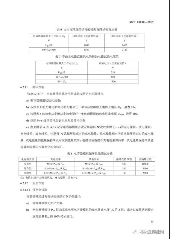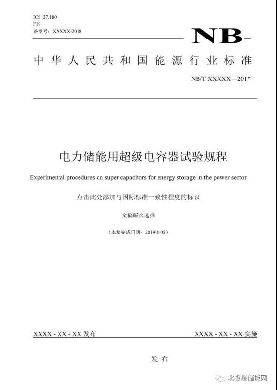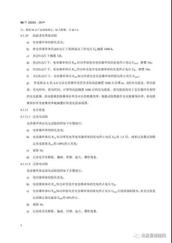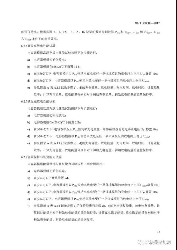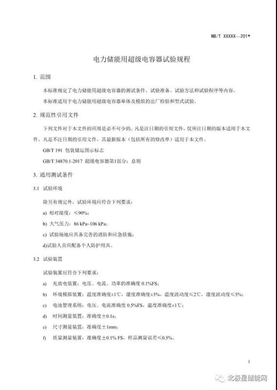 《電力儲(chǔ)能用超級(jí)電容器試驗(yàn)規(guī)程》能源行業(yè)標(biāo)準(zhǔn)征求意見(jiàn)稿