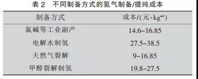 基于我國的工業(yè)副產氫氣資源豐富,僅氯堿行業(yè)即可提供每年超過100萬t優(yōu)質氫氣,上述制備/提純成本也相對在可接受的范疇,氫能產業(yè)發(fā)展初期階段以優(yōu)先消納上述資源為佳。