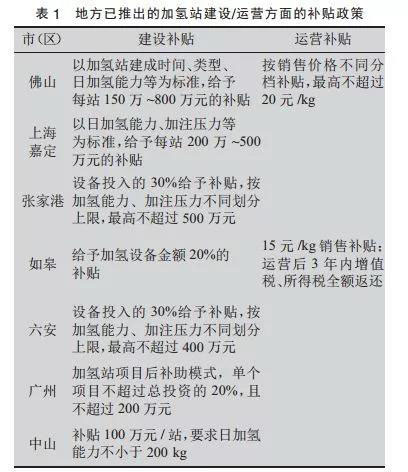 選取佛山、上海等(如表1所示)上下游產業(yè)鏈具備可靠基礎、地方政府已有具體補貼措施出臺,產業(yè)扶持的決心和力度都比較大的地區(qū)進行加氫站規(guī)劃布點,更可能實現配套燃料電池商用車的示范落地,是較穩(wěn)妥的方案。