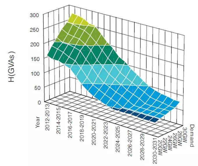 ? 圖6:英不列顛島電力系統(tǒng)夏季機械慣量