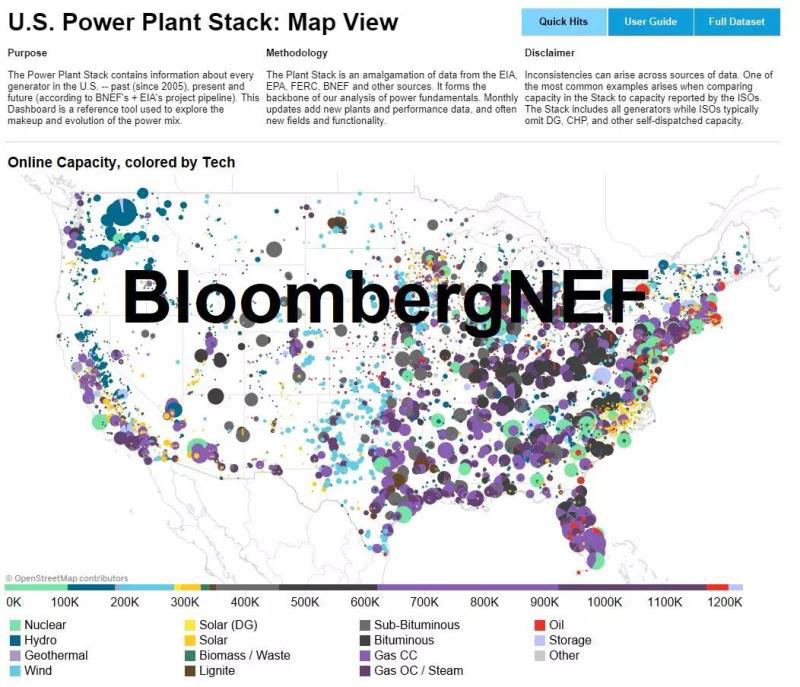 彭博新能源財(cái)經(jīng)用戶(hù)可訪問(wèn)“美國(guó)電廠數(shù)據(jù)庫(kù)”網(wǎng)頁(yè)互動(dòng)工具,了解美國(guó)所有能源技術(shù)的每個(gè)電廠的運(yùn)營(yíng)歷史、現(xiàn)狀和未來(lái)預(yù)期。