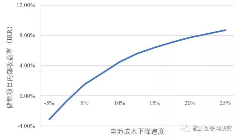 電池成本下降速度對(duì)內(nèi)部收益率的影響如下圖所示。