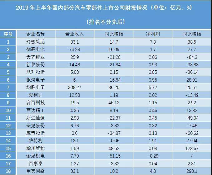 截至目前,已經(jīng)正式發(fā)布2019年上半年財報的自主零部件上市公司中,幾乎是盈虧各半,苦樂不均。從我們選取的18家自主零部件上市公司財報情況看,除了極少數(shù)頭部企業(yè)依然堅挺,其余大部分企業(yè)兩極分化趨勢較為明顯。