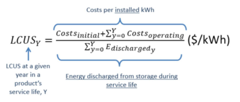 因此,簡單地說,儲能系統(tǒng)平準(zhǔn)化使用成本(LCUS)是儲能系統(tǒng)的每次使用成本。