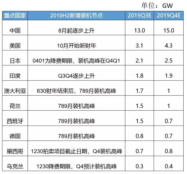 除了國內(nèi)市場之外,包括美國、日本、印度以及歐洲等地的裝機高潮也將在四季度啟動。根據(jù)蓋錫咨詢數(shù)據(jù),下半年全球10個重點市場都將迎來需求旺季,尤其中國、美國、日本、墨西哥、烏克蘭等市場裝機高峰將在四季度,因此預計四季度裝機量好于三季度,10月預計為全球裝機量最高的一個月。