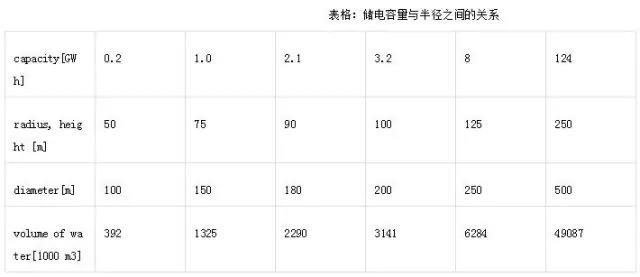 如果按巖石密度2600kg/m3來折算,半徑125米的儲能電站可以儲電8GWh,這已經(jīng)可以與德國境內(nèi)最大的Goldisthal抽水蓄能電站(8.4GWh)相比了。而如果半徑達到250米,理論上就可以儲電124GWh,基本可以與世界上大多數(shù)抽水蓄能電站相匹敵。