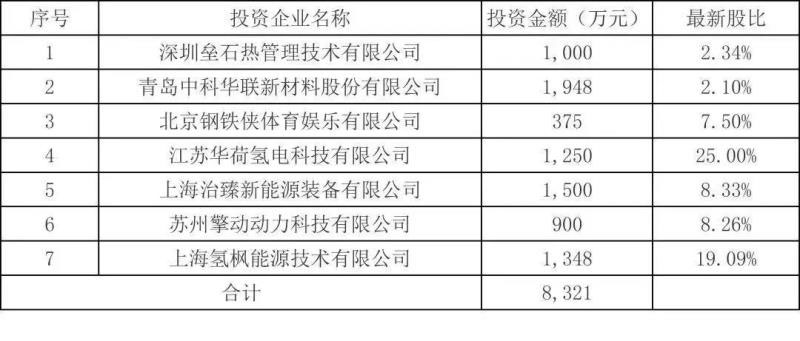該基金投向氫能源產(chǎn)業(yè)鏈相關(guān)標(biāo)的企業(yè)的總金額共計4998萬元,占總投資金額的60%不到,按照協(xié)議中“投向氫能源產(chǎn)業(yè)鏈相關(guān)標(biāo)的企業(yè)的總金額原則上不低于基金實繳規(guī)模的 70%”這一原則來看,同創(chuàng)富瑞基金未來還將進一步投資氫能相關(guān)項目。