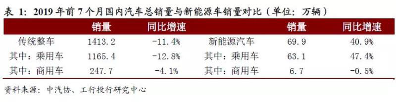 2019年國(guó)內(nèi)新能源汽車?yán)^續(xù)保持增長(zhǎng)態(tài)勢(shì),特別是在傳統(tǒng)燃油車出現(xiàn)負(fù)增長(zhǎng)的背景下,新能源汽車的正增長(zhǎng)似乎成為黯淡車市中的一抹光亮。2019年前7個(gè)月國(guó)內(nèi)新能源汽車?yán)塾?jì)銷量為69.9萬(wàn)輛,同比增長(zhǎng)40.9%,其中新能源乘用車?yán)塾?jì)銷量63.1萬(wàn)輛,同比增長(zhǎng)47.7%,但新能源商用車?yán)塾?jì)銷量6.7萬(wàn)輛,同比下降0.5%。而同期國(guó)內(nèi)整車市場(chǎng)銷量為1413.2萬(wàn)輛,同比大幅下滑11.4%,其中乘用車市場(chǎng)銷量下滑12.8%。單純從數(shù)據(jù)來(lái)看,新能源汽車產(chǎn)業(yè)表現(xiàn)似乎不錯(cuò),但如果與往年相比,產(chǎn)業(yè)增速卻已呈現(xiàn)明顯放緩的勢(shì)頭。中國(guó)汽車工業(yè)協(xié)會(huì)在7月份將新能源汽車的年度銷售目標(biāo)由160萬(wàn)輛下調(diào)至150萬(wàn)輛,顯示出這種擔(dān)憂。