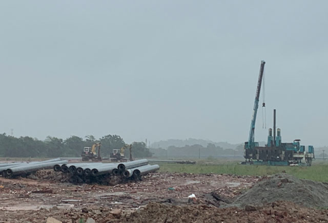 然而,第一財經(jīng)1℃記者近日探訪發(fā)現(xiàn),總占地1000多畝的長江項目現(xiàn)場,除了數(shù)輛推土機(jī)、一輛打樁機(jī)外和幾間簡易房外,廠房等基礎(chǔ)設(shè)施仍未開建。