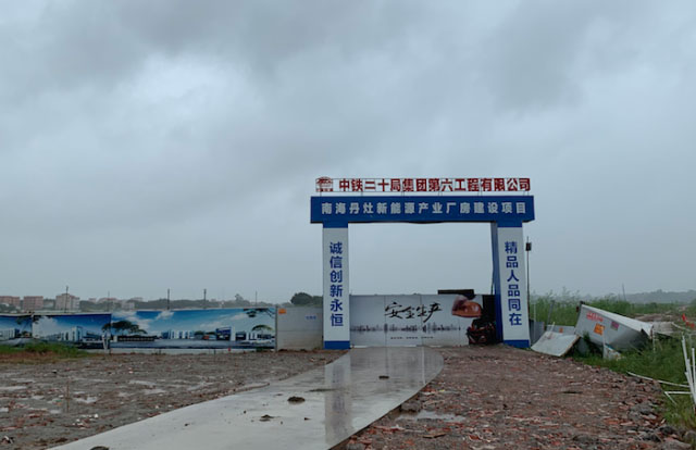 進(jìn)入長江項目所在地,一座臨時搭起的方形簡易大門上寫著“南海丹灶新能源產(chǎn)業(yè)廠房建設(shè)項目”的大字。這里將是長江項目未來的生產(chǎn)車間。