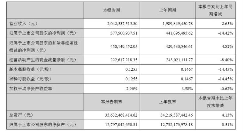 28日晚間,中節(jié)能太陽能股份有限公司(下稱“中節(jié)能”)發(fā)布了2019年半年度報告。報告期內(nèi),中節(jié)能實現(xiàn)營業(yè)收入20.43億元,同比增長2.65%;歸屬于上市公司股東的凈利潤3.78億元,同比減少14.42%,截至2019年6月底,公司總資產(chǎn)為356.32億元。