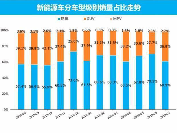 從車(chē)型級(jí)別銷(xiāo)量來(lái)看,7月份新能源轎車(chē)銷(xiāo)量為1.9萬(wàn)輛,銷(xiāo)量占比為60.9%,較上個(gè)月下滑9.2個(gè)百分點(diǎn);與去年同期相比,轎車(chē)銷(xiāo)量占比下跌2.2個(gè)百分點(diǎn)。新能源SUV銷(xiāo)量為1.1萬(wàn)輛,銷(xiāo)量占比為36.9%,較上個(gè)月增長(zhǎng)9.2個(gè)百分點(diǎn);與去年同期相比,SUV銷(xiāo)量占比上漲3.3個(gè)百分點(diǎn),SUV整體銷(xiāo)量占比有所增長(zhǎng),但不夠穩(wěn)定。
