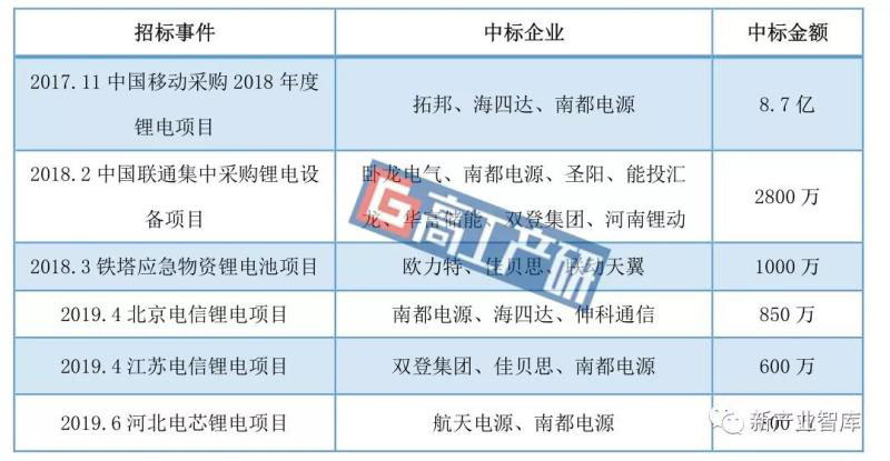 中國通訊后備鋰電池主要中標(biāo)案例