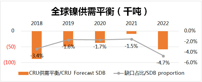 在新能源汽車增長的拉動(dòng)下,三元?jiǎng)恿﹄姵赜昧垦该驮鲩L,從而帶動(dòng)了鎳資源的需求大爆發(fā),英國商品研究機(jī)構(gòu)(CRU)推算2017-2019年累計(jì)缺口為12.5萬金屬噸,到2025年新能源汽車將新增48萬噸以上鎳金屬的需求,供需缺口將進(jìn)一步拉大,由此引發(fā)全球鎳資源告急。