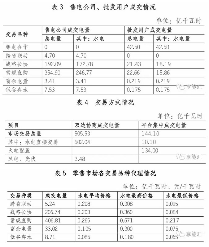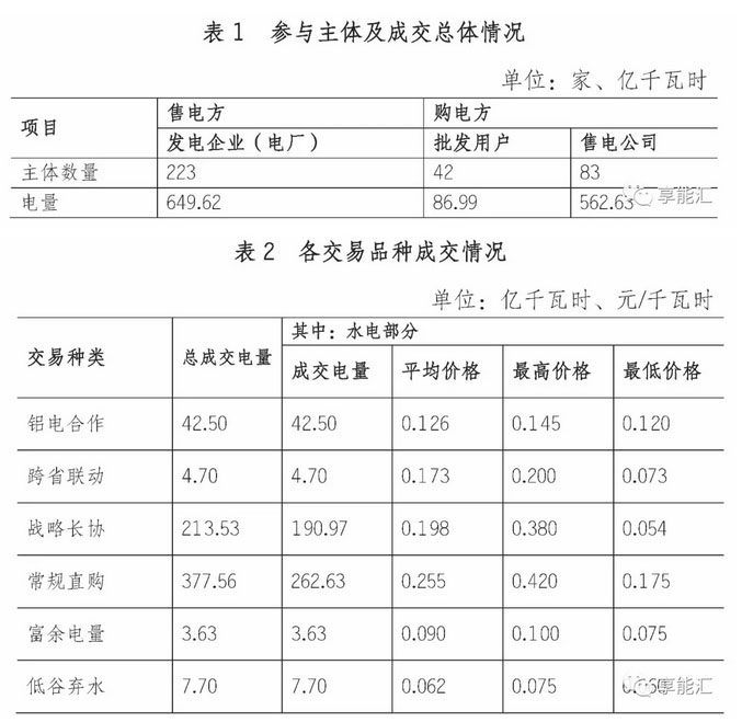 年度交易中,83家售電公司,代理了3146家電力用戶,年度簽約總量 660.53 億千瓦時,水電簽約均價 0.229 元/千瓦時。