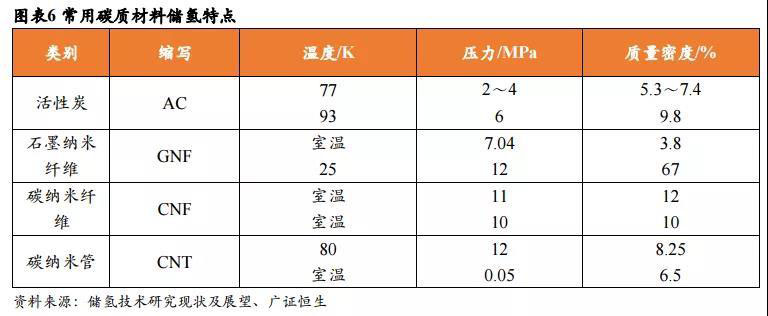 預(yù)計(jì)未來(lái)的研究方向主要集中在相關(guān)機(jī)理的研究;制備、檢測(cè)工藝的優(yōu)化;高儲(chǔ)量、低成本碳材料的探索以及生產(chǎn)過(guò)程的大規(guī)模工業(yè)化等方面。常用的碳質(zhì)材料及其儲(chǔ)氫特點(diǎn)如下。
