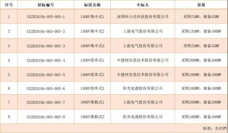 2019年8月30日,國家電力投資集團有限公司公示了2019年度第五十九批集中招標(第一批光伏逆變器設(shè)備)的招標結(jié)果。華為(760MW)、上能電氣(695MW)、陽光電源(640MW)、科士達(130MW)中標,成為此次逆變器集采的贏家。
