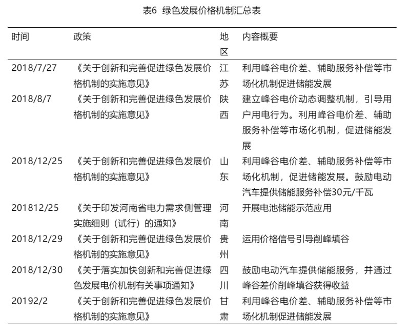 2018年7月2日,國家發(fā)改委還印發(fā)了《關(guān)于創(chuàng)新和完善促進(jìn)綠色發(fā)展價(jià)格機(jī)制的意見》,旨在為電儲(chǔ)能設(shè)施參與削峰填谷增加補(bǔ)貼。目前已有江蘇、廣東、山東、貴州、甘肅、四川等地先后轉(zhuǎn)發(fā)了該文件,表示將加大峰谷電價(jià)支持力度(見表6)。同月,南方能監(jiān)局印發(fā)《廣西電力調(diào)峰輔助服務(wù)交易規(guī)則(征求意見稿)》。文件提出需求側(cè)調(diào)峰服務(wù),對(duì)于參與響應(yīng)的需求側(cè)用戶,會(huì)獲得相應(yīng)的收益。