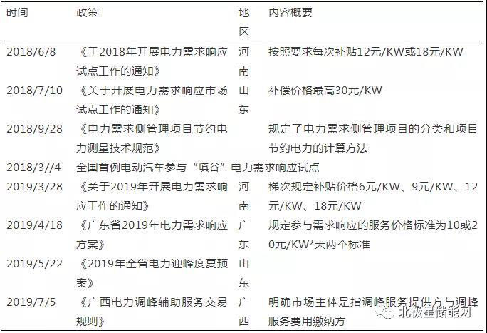 表6 電力需求響應(yīng)政策