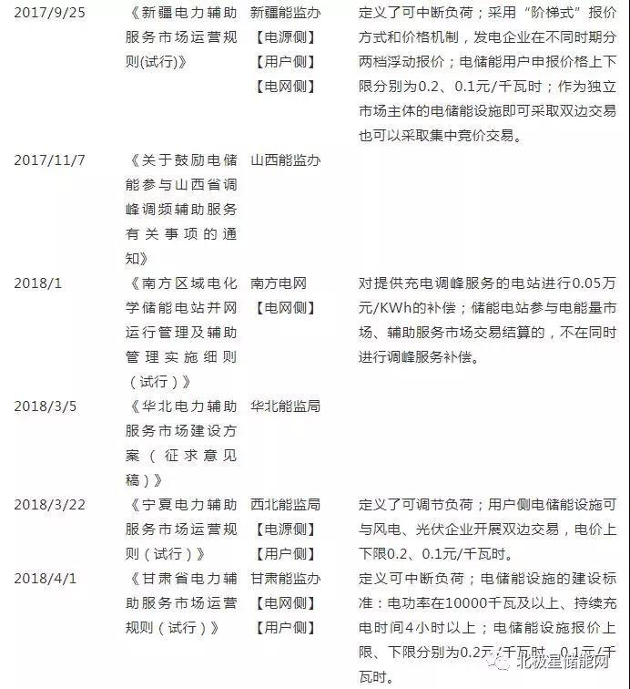 2016年6月7日,《關(guān)于促進(jìn)電儲(chǔ)能參與“三北”地區(qū)電力輔助服務(wù)補(bǔ)償(市場(chǎng))機(jī)制試點(diǎn)工作的通知》(以下簡(jiǎn)稱《通知》)正式發(fā)布。繼2014年《能源發(fā)展戰(zhàn)略行動(dòng)計(jì)劃(2014-2020年)》中首次將儲(chǔ)能列入重點(diǎn)創(chuàng)新領(lǐng)域后,《通知》首次將儲(chǔ)能和電力市場(chǎng)改革結(jié)合起來,明確了發(fā)電側(cè)/用戶側(cè)儲(chǔ)能作為獨(dú)立市場(chǎng)主體的地位,即“可以與機(jī)組聯(lián)合參與調(diào)峰調(diào)頻”;鼓勵(lì)企業(yè)探索發(fā)電側(cè)儲(chǔ)能和用戶側(cè)儲(chǔ)能的商業(yè)應(yīng)用模式。《通知》的發(fā)布從儲(chǔ)能身份、應(yīng)用價(jià)值等方面為儲(chǔ)能參與電力輔助服務(wù)開啟了一扇大門[8, 9]。