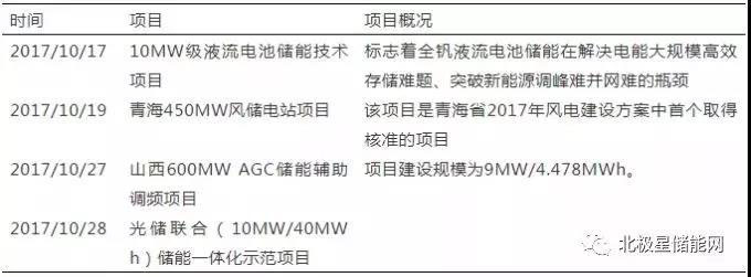 表3 2017年10-11月儲(chǔ)能示范項(xiàng)目匯總表
