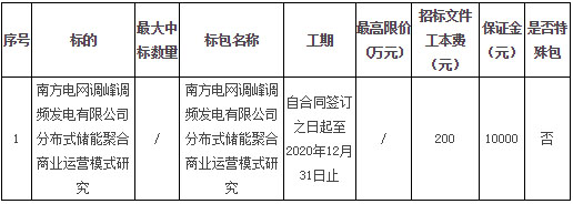南方電網(wǎng)調(diào)峰調(diào)頻發(fā)電有限公司就南方電網(wǎng)調(diào)峰調(diào)頻發(fā)電有限公司分布式儲(chǔ)能聚合商業(yè)運(yùn)營模式研究向國內(nèi)公開招標(biāo),凡有意參加投標(biāo)的單位均可購買招標(biāo)文件。