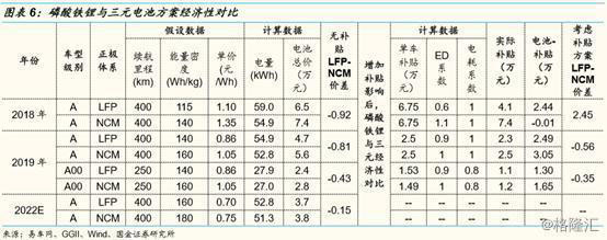 就如前文所述,早期國家新能源汽車的補貼偏向于高能量密度與高續(xù)航里程產(chǎn)品,基于政策大背景之下,汽車生產(chǎn)商理所當(dāng)然是選擇了三元電池,畢竟除了成本下降之外,三元電池還具備高體積、能量密度更容易滿足乘用車空間有限、高續(xù)航里程需求等優(yōu)勢。