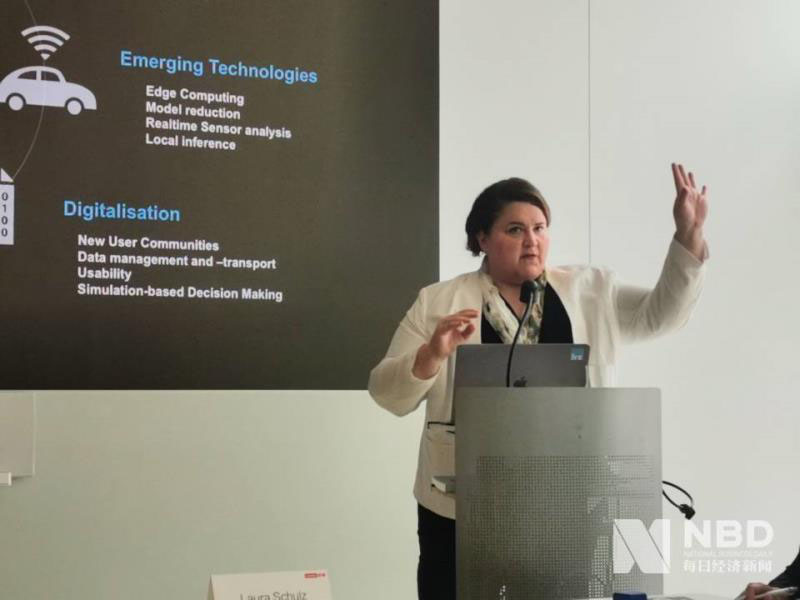 萊布尼茨超算中心戰(zhàn)略性發(fā)展和合作業(yè)務(wù)主管Laura Schulz在給來訪記者介紹萊布尼茨超算中心