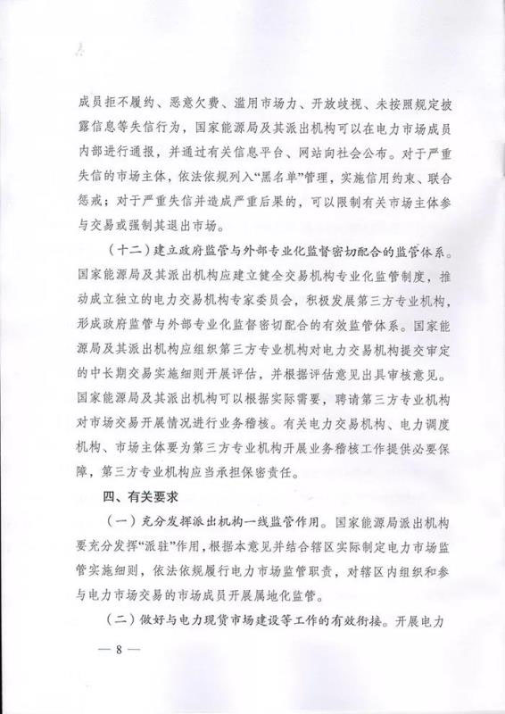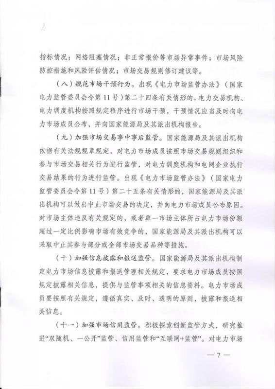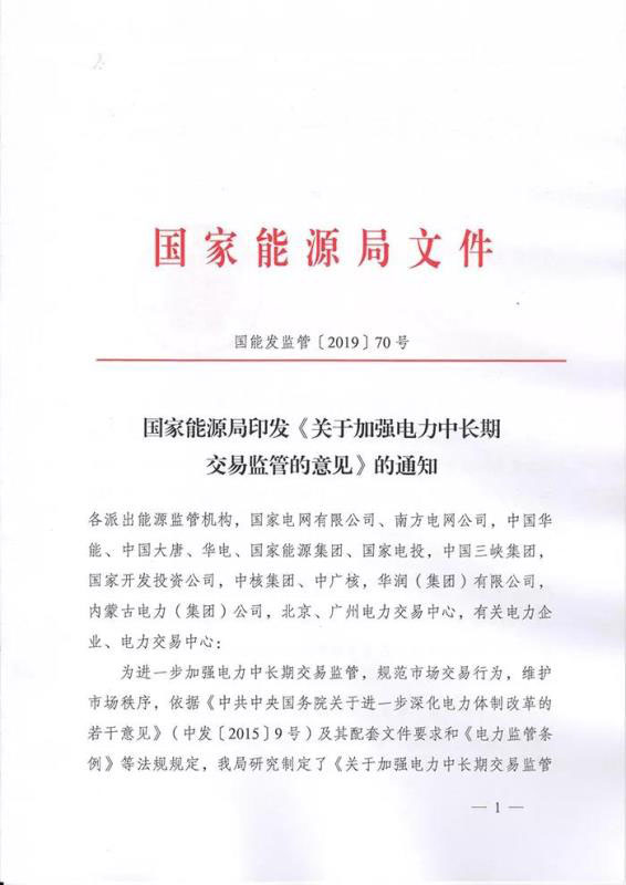 國家能源局印發(fā)《關(guān)于加強(qiáng)電力中長期交易監(jiān)管的意見》的通知