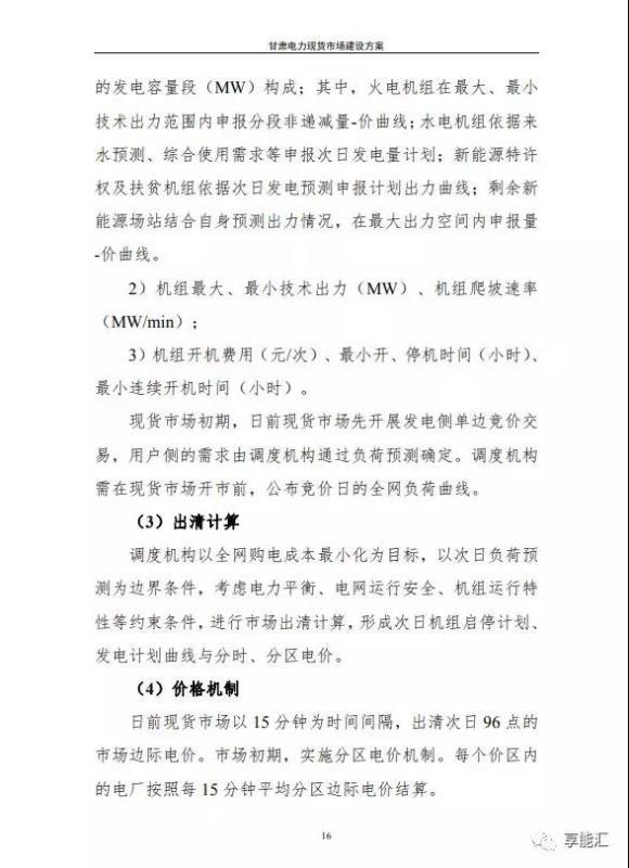 水電和新能源特許權及扶貧機組作為價格接受者參與日前現貨市場,火電機組及剩余新能源場站競價參與日前現貨市場。