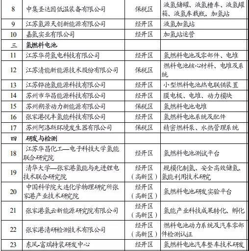 張家港市主要涉氫企業(yè)情況一覽表(資料來源:張家港政府網(wǎng))