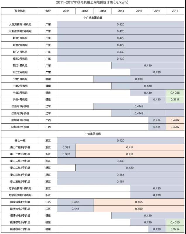 我國(guó)核電上網(wǎng)電價(jià)經(jīng)歷了“一廠一價(jià)”和“標(biāo)桿上網(wǎng)電價(jià)”兩個(gè)主要階段,目前執(zhí)行標(biāo)桿上網(wǎng)電價(jià)機(jī)制。比較核電標(biāo)桿上網(wǎng)電價(jià)與燃煤標(biāo)桿上網(wǎng)電價(jià),2017年,有核省份中只有廣東省的燃煤標(biāo)桿上網(wǎng)電價(jià)高于核電標(biāo)桿上網(wǎng)電價(jià),遼寧、江蘇、浙江、福建、山東、廣西、海南等其他省份均低于核電標(biāo)桿上網(wǎng)電價(jià)。