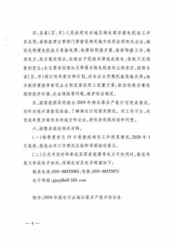 國家能源局關(guān)于下達(dá)2019年煤電行業(yè)淘汰落后產(chǎn)能目標(biāo)任務(wù)的通知