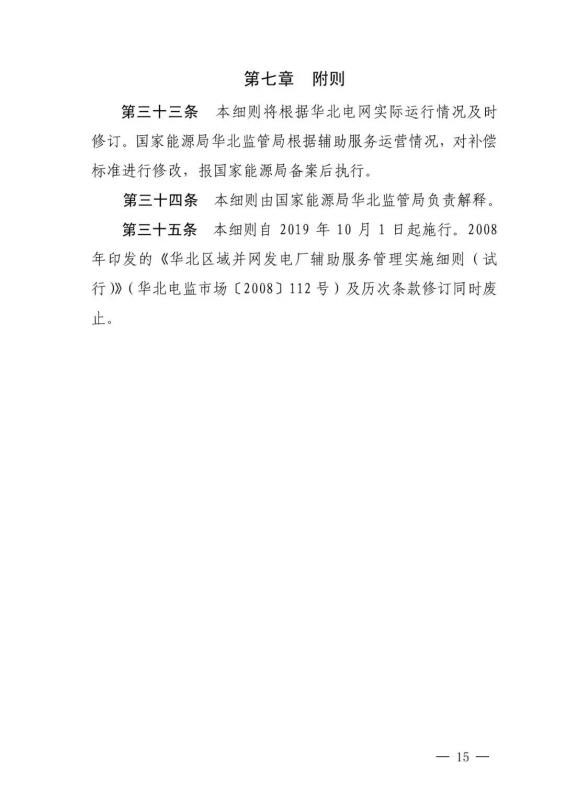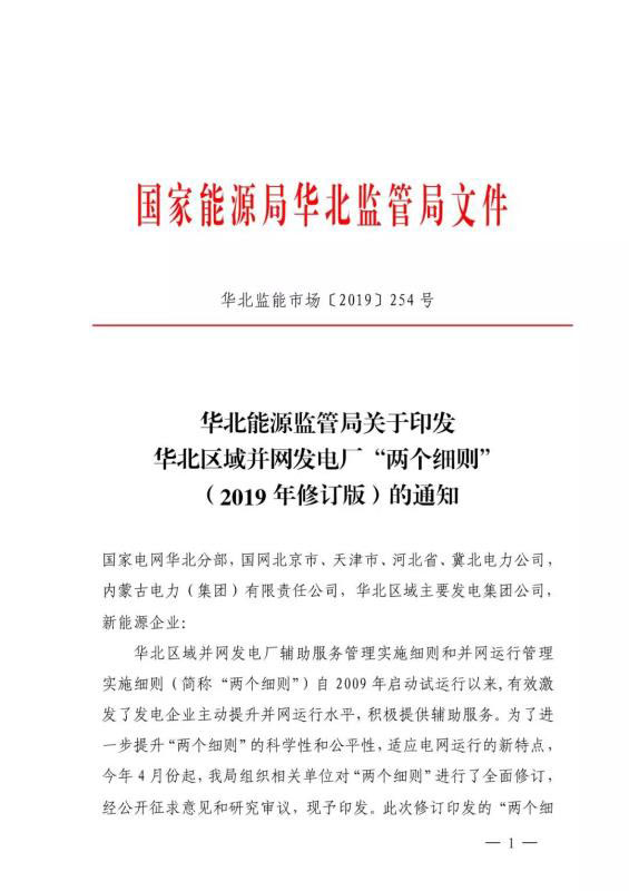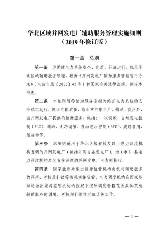 中國儲能網(wǎng)訊:9月25日,華北能監(jiān)局正式印發(fā)華北區(qū)域并網(wǎng)發(fā)電廠“兩個細則”(2019 年修訂版),要求自10月1日起正式執(zhí)行。以下為《華北區(qū)域并網(wǎng)發(fā)電廠輔助服務管理實施細則》全文。