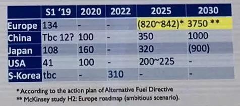 加氫站數量:中國全面落后于歐美日