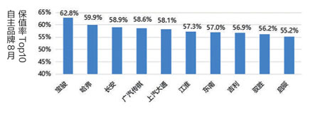 從8月自主品牌保值率TOP10來看,自主車企推出的WEY、領克等高端品牌,均沒有進入前十榜單,尚未在二手車市場具備影響力。寶駿由于產品終端價格較低,各款車型均價基本都低于10萬元,所以價格抗風險性相對較高,保值率繼續(xù)領跑。哈弗、廣汽傳祺保值率提升,排名較上月也有所上升。