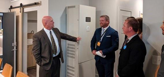Sonnen電池儲(chǔ)能系統(tǒng)部署在Soleil Lofts社區(qū)公寓樣板間的客廳中