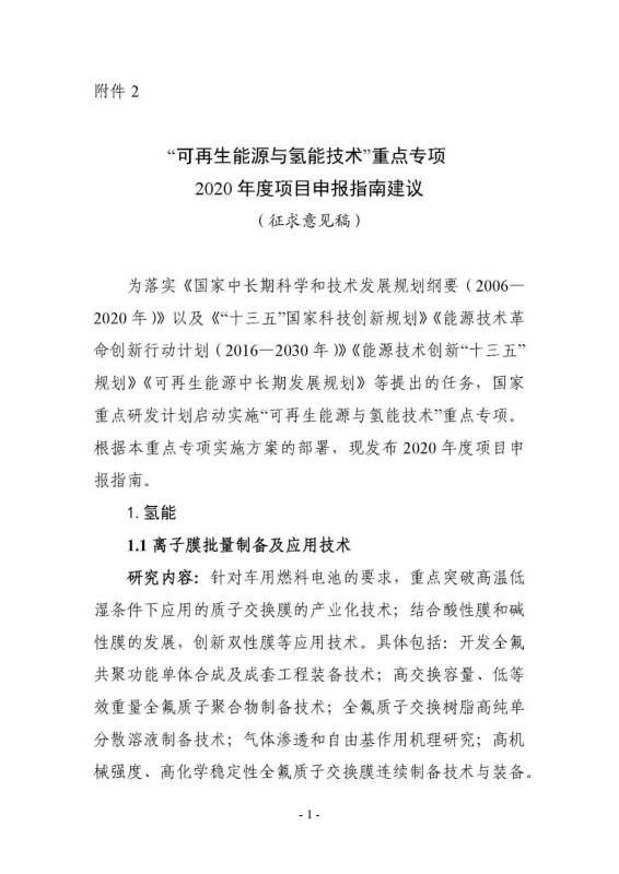 “可再生能源與氫能技術(shù)”重點(diǎn)專(zhuān)項(xiàng)2020年度項(xiàng)目申報(bào)指南建議