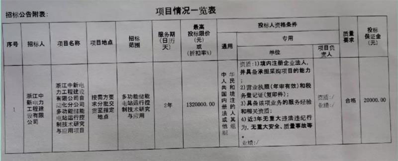 浙江中新電力工程建設(shè)有限公司自動(dòng)化分公司多功能儲(chǔ)能電站運(yùn)行控制技術(shù)研究與應(yīng)用項(xiàng)目招標(biāo)公告