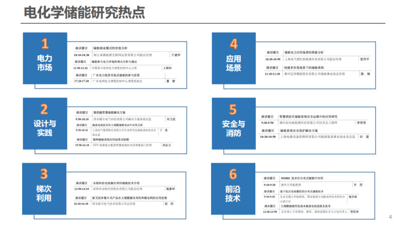 這次研討會研究的內(nèi)容,我們可以看到在主要重點在以下六個方面,包括電力市場的研究,儲能電池的設計與實踐,或是儲能電池的梯次利用、儲能的場景研究、儲能的本體安全、消防以及儲能的前沿技術(shù)。可以看出參加研討會的企業(yè)都想推動儲能技術(shù)的不斷發(fā)展,使得更多儲能項目的落地,獲得更多的經(jīng)濟收益。