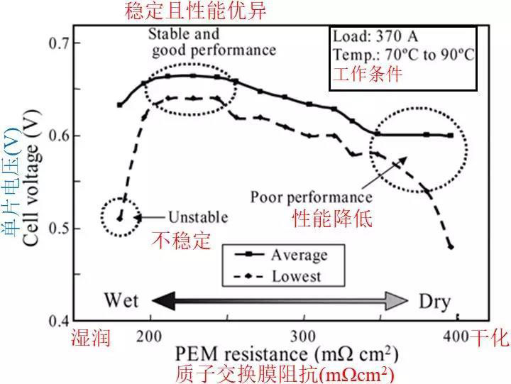 豐田燃料電池輸出性能與單片水含量關(guān)系