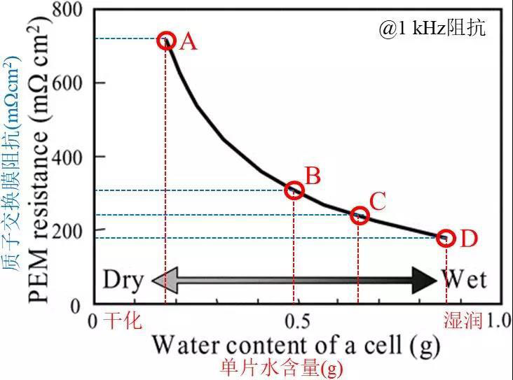 豐田質(zhì)子交換膜阻抗與單片水含量關(guān)系