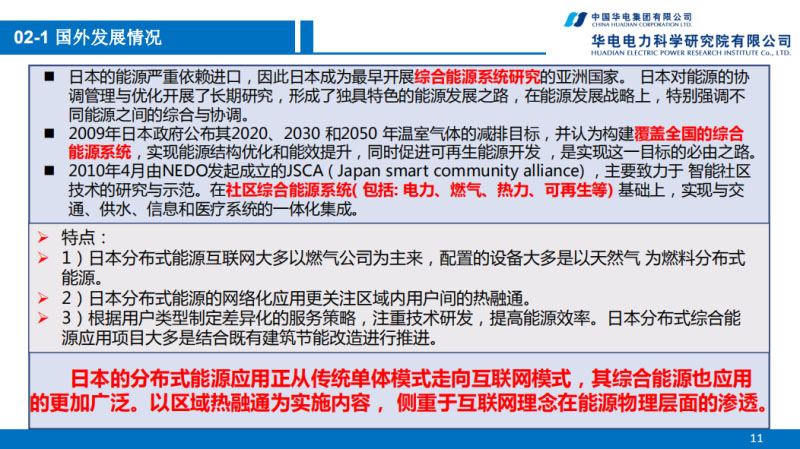 日本是亞洲做綜合能源比較早,受資源的限制,重點(diǎn)主要是在分布式能源和社區(qū)的綜合能源系統(tǒng),他們?cè)?009年提出了2020、2030、2050年階段性的節(jié)能減排目標(biāo),他們現(xiàn)在逐漸向分布式能源+互聯(lián)網(wǎng)的理念逐漸滲透。